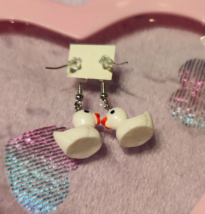 Mignons petits canards blancs plastique en boucles d'oreilles. Neuf sans étiquette ni emballage. #mllejoysbijoux #mllejoysneuf