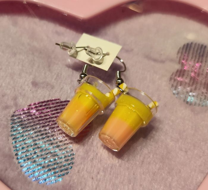 Verres de cocktail jaunes en résine en boucles d'oreilles. Neuf sans étiquette ni emballage. #mllejoysbijoux #mllejoysneuf