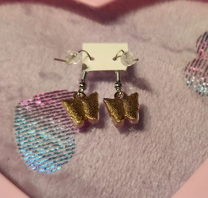 Petits papillons rose pâle métal et résine en boucles d'oreilles. Neuf sans étiquette ni emballage. #mllejoysbijoux #mllejoysneuf