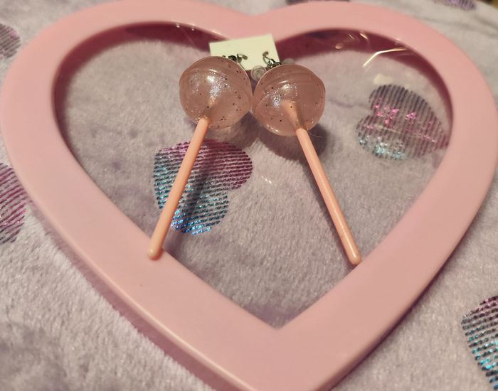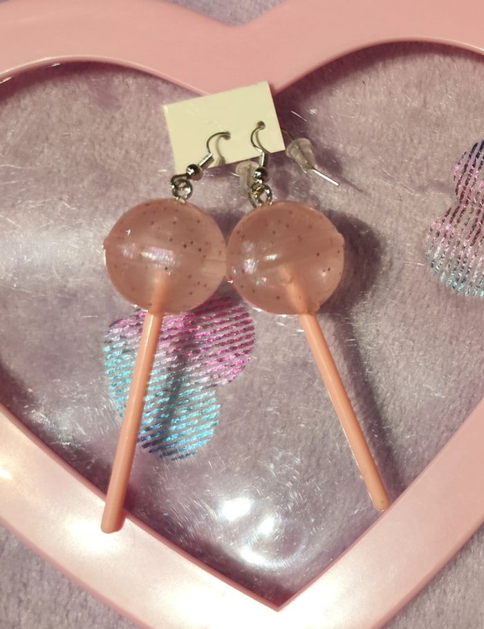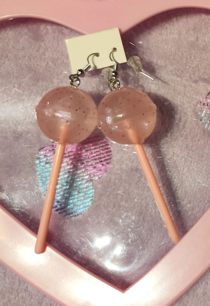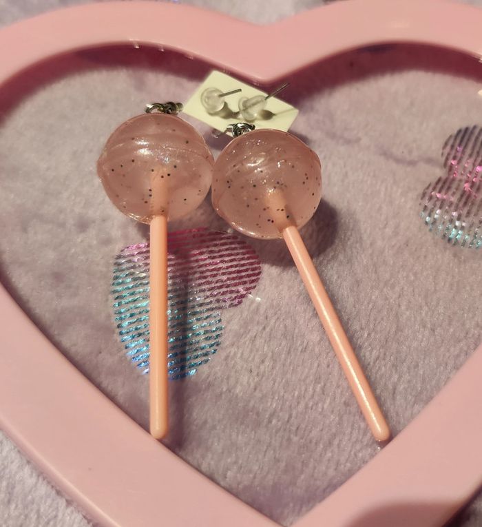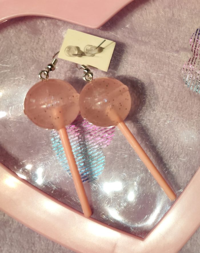 Sucettes rose clair pailletées en résine en boucles d'oreilles. Neuf sans étiquette ni emballage. #mllejoysbijoux #mllejoysneuf