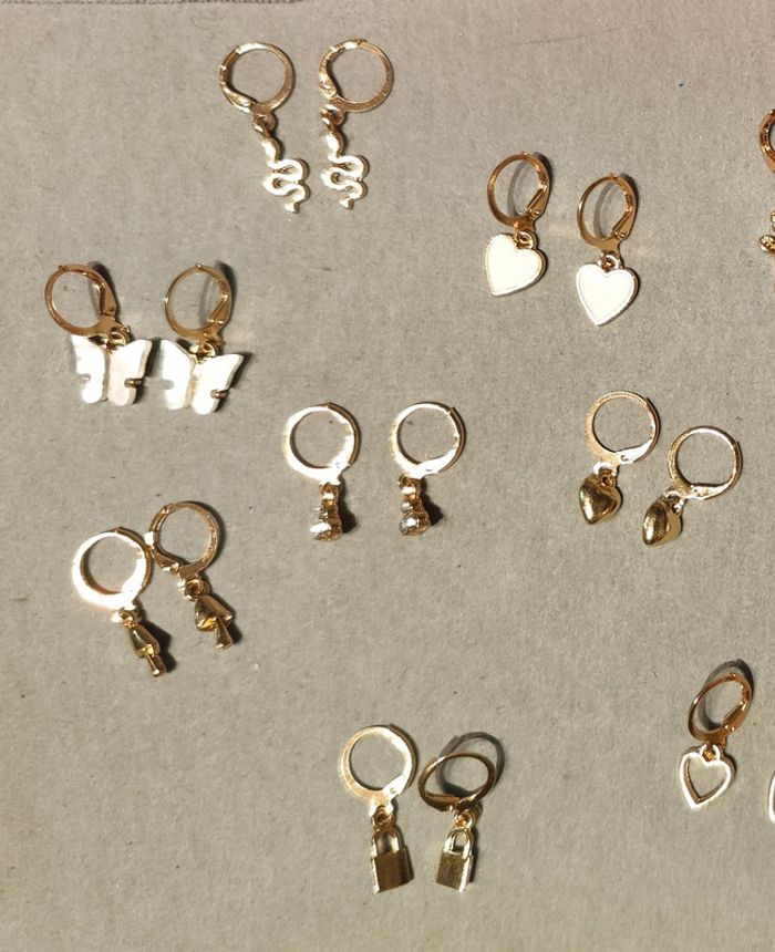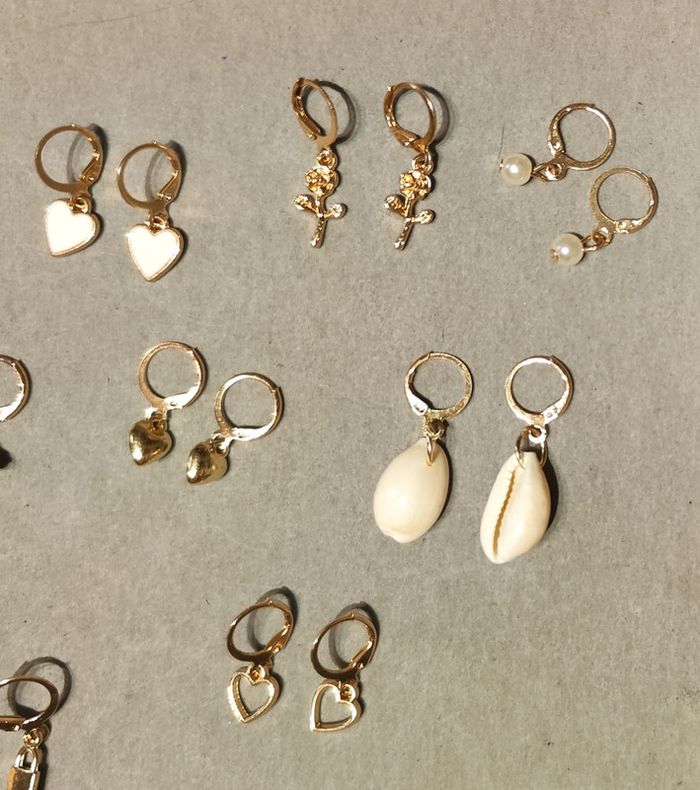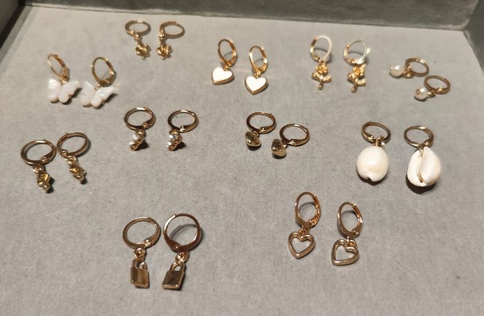 Lot de 11 paires de boucles d'oreilles fantaisie dorées - photo numéro 5