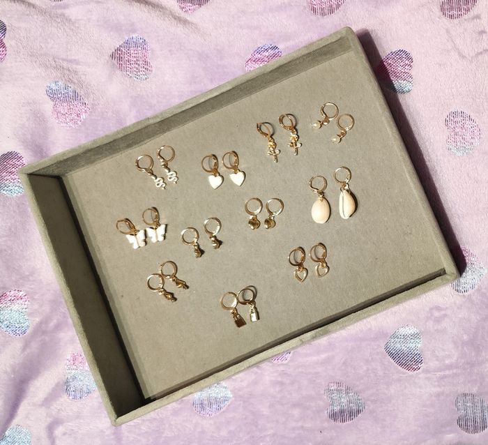 Lot de 11 paires de boucles d'oreilles fantaisie dorées. Neuf sans étiquette ni emballage. #mllejoysbijoux #mllejoysneuf