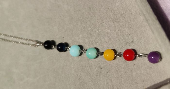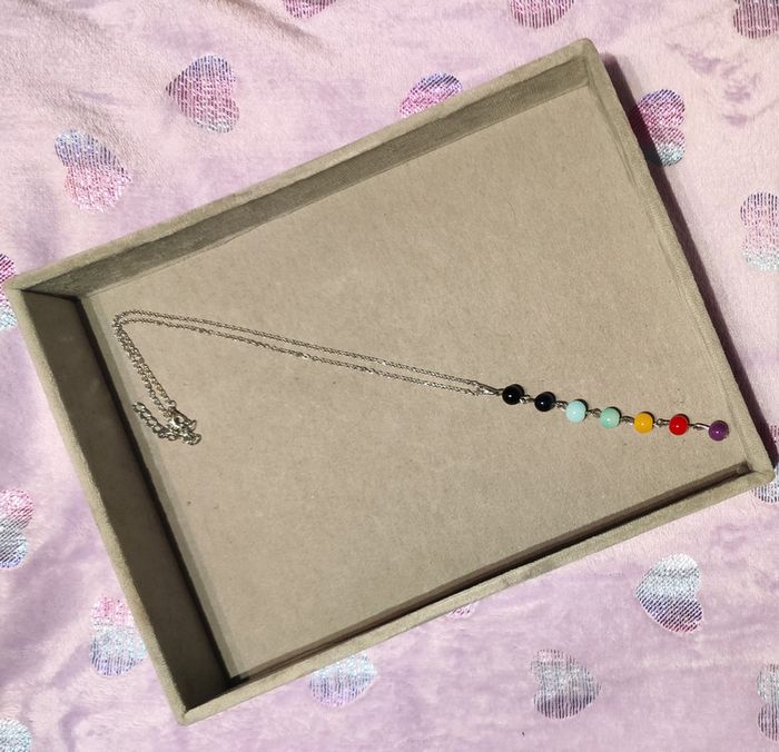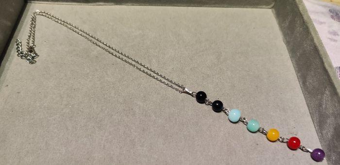 Collier argenté avec pendentif de perles colorées. Neuf sans étiquette ni emballage. #mllejoysbijoux #mllejoysneuf