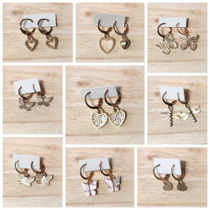 Lot 9 paires de petites boucles d'oreilles fantaisie dorées - photo numéro 5