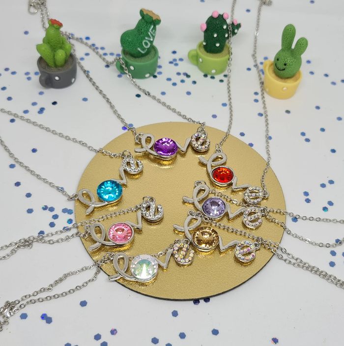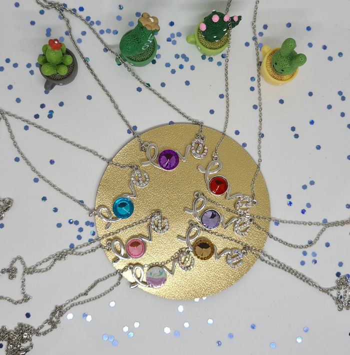 Lot de 7 colliers argentés avec pendentifs Love à pierre colorée - photo numéro 2