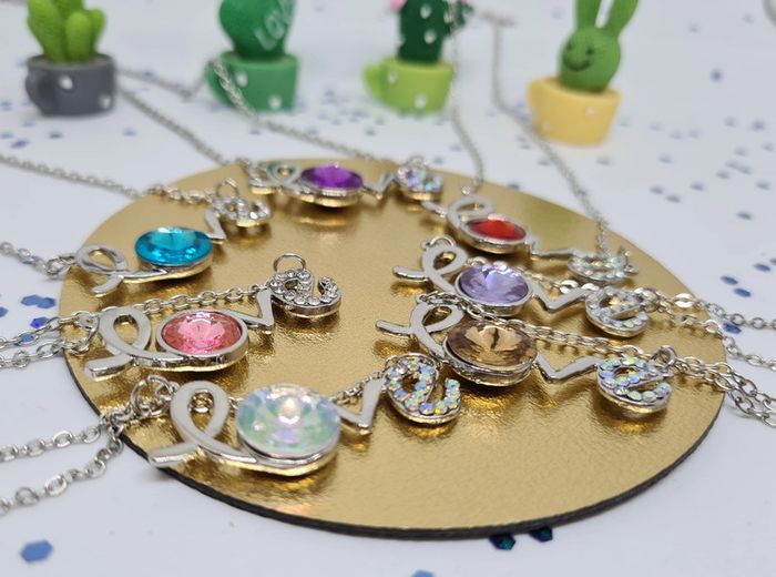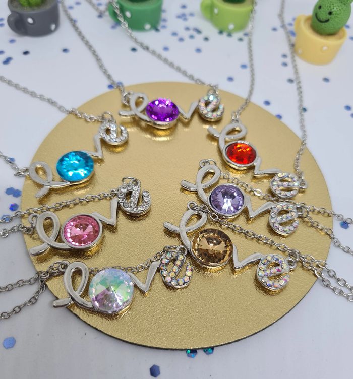 Lot de 7 colliers argentés avec pendentifs Love à pierre colorée - photo numéro 5