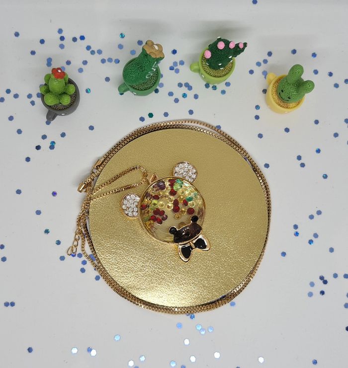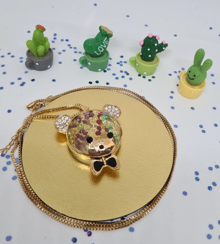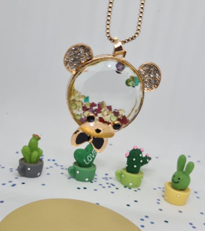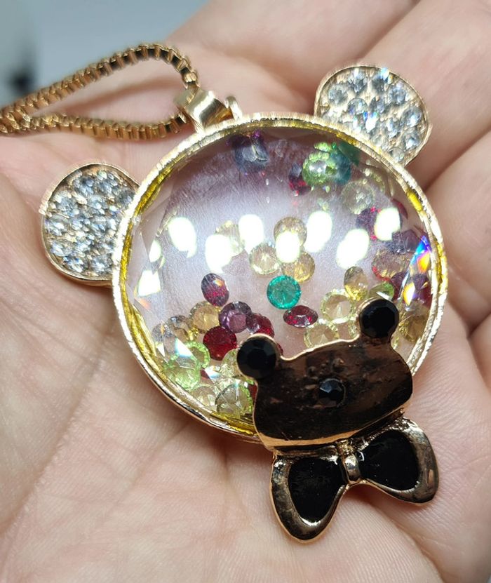 Collier doré ourson transparent avec pierres colorées - photo numéro 4