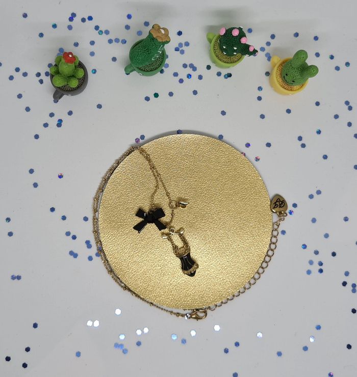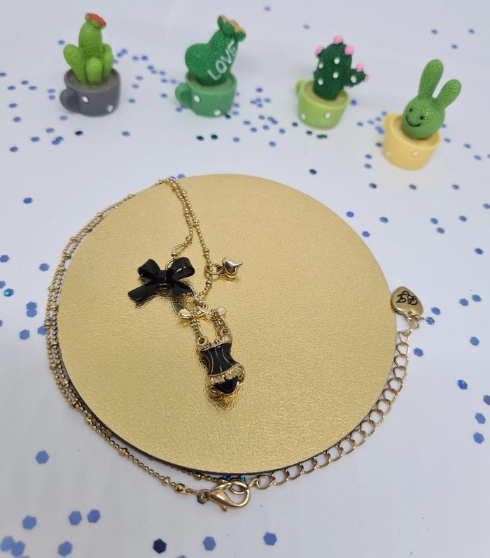 Collier doré fin corset noir à lacets blancs - photo numéro 5