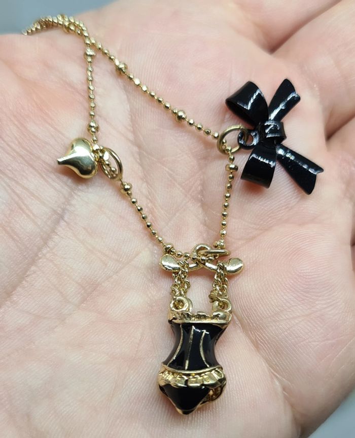 Collier doré fin corset noir à lacets blancs. Le pendentif est un corset féminin noir à lacets blancs en relief. Il est superbe. Neuf sans étiquette ni emballage. #mllejoysbijoux #mllejoysneuf