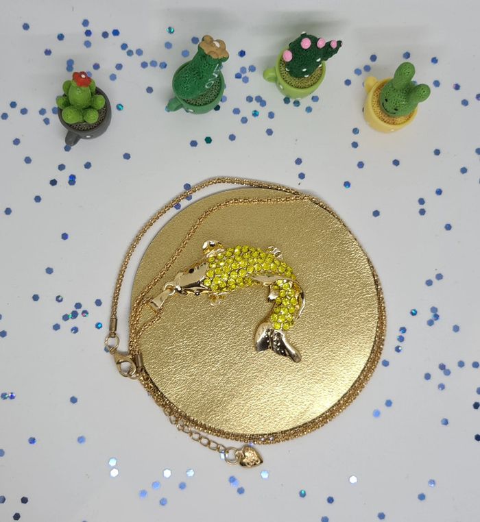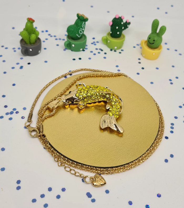 Collier doré carpe koï jaune. Le pendentif est une carpe koï en relief. Il est superbe. Neuf sans étiquette ni emballage. #mllejoysbijoux #mllejoysneuf
