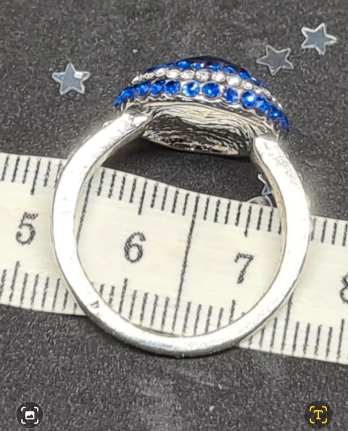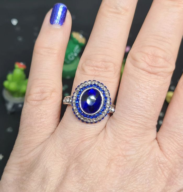 Bague fantaisie argentée avec pierres bleues marines et zirconiums. Neuf sans étiquette ni emballage. * Toutes mes bagues sont des bagues fantaisies. Des bagues en métal, en acier, en alliage de zinc ou en cuivre, alliage de cuivre, etc... Je ne vends ABSOLUMENT AUCUNE bague en or ou en argent véritable. #mllejoysbijoux #mllejoysneuf