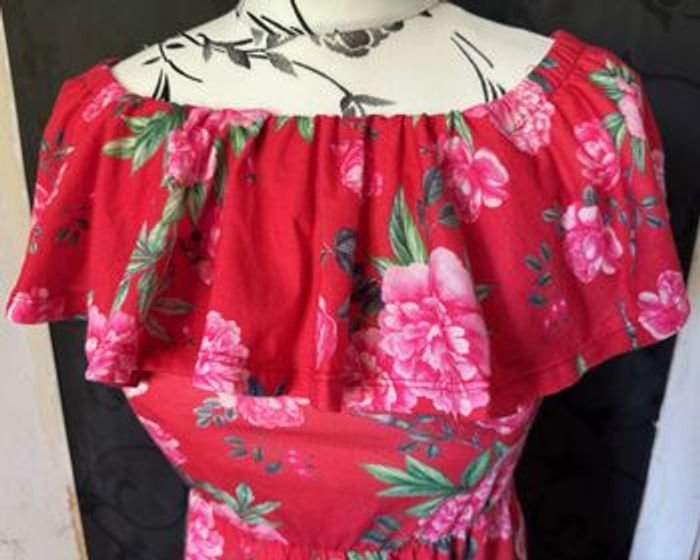 Robe rouge fleurie col Bardot taille 38/40 - photo numéro 6