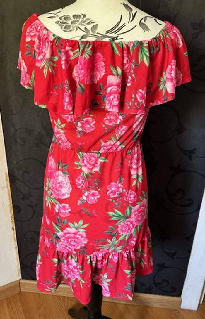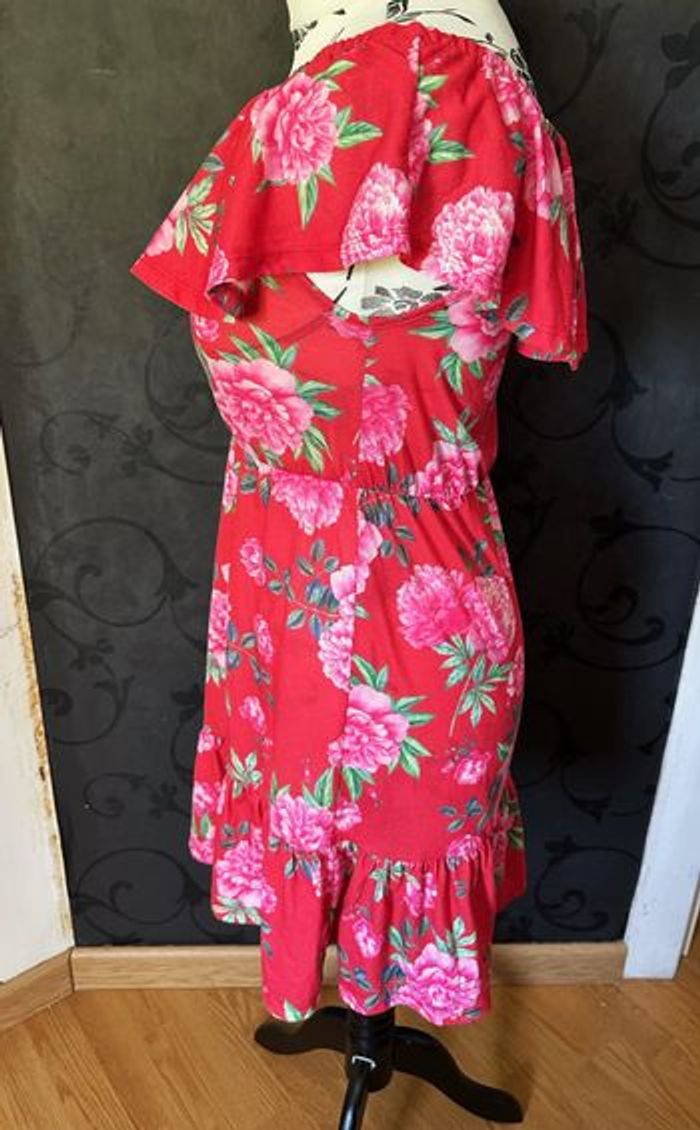 Robe rouge fleurie col Bardot taille 38/40 - photo numéro 2