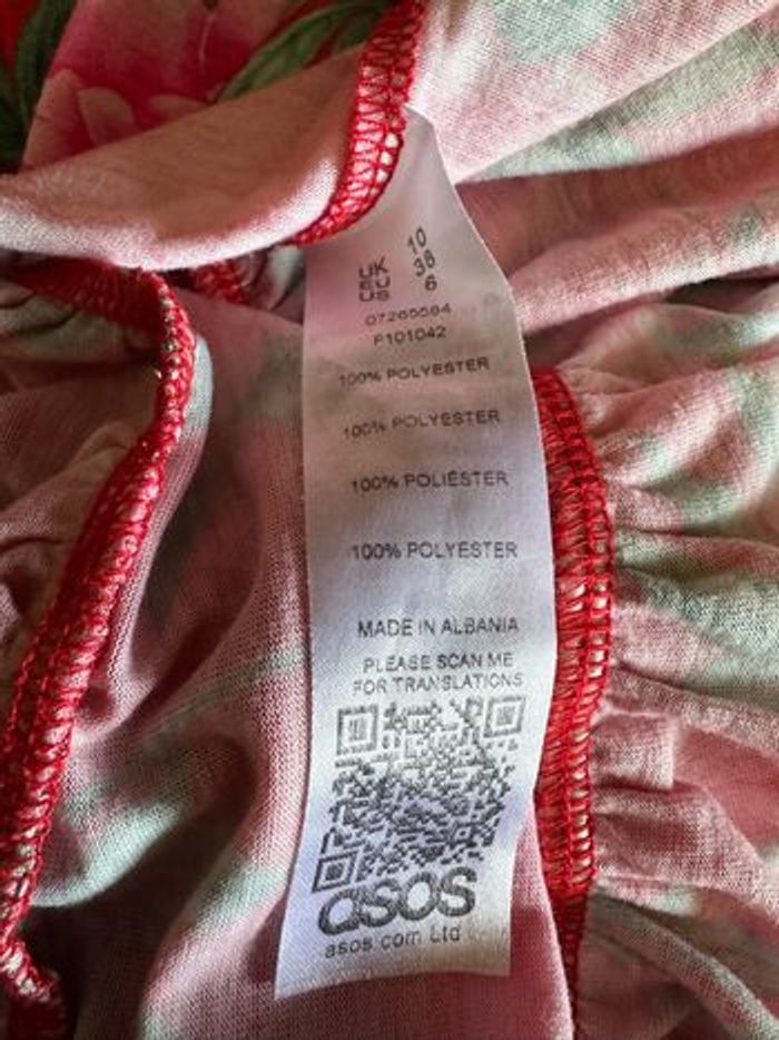 Marque "Asos", Encolure Bardot volantée, taille élastiquée. Bas de robe volanté. Longueur 83 cm. Matière 100% polyester infroissable et légère.