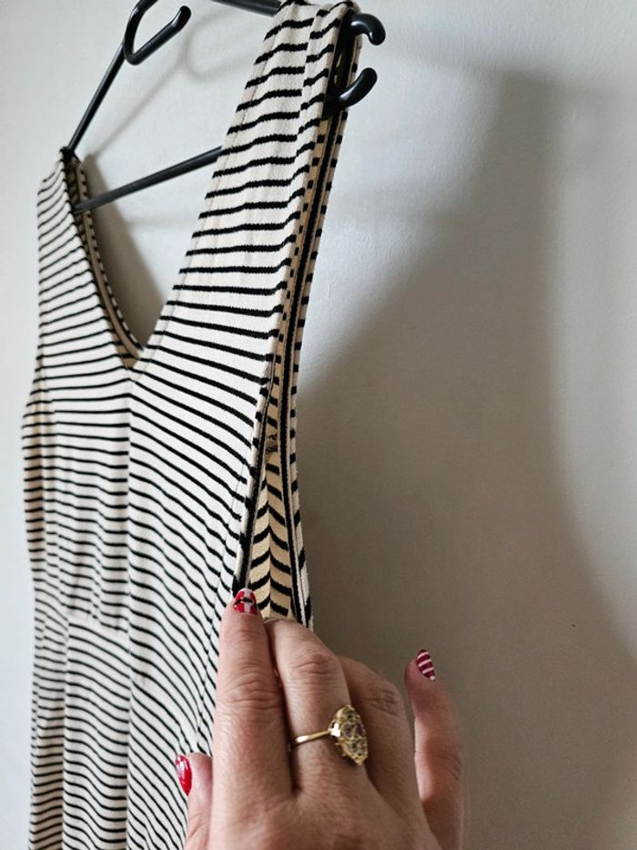 En très bon état Longueur totale 95cm Largeur aisselle à aisselle 48cm A rayures noires et blanches P1