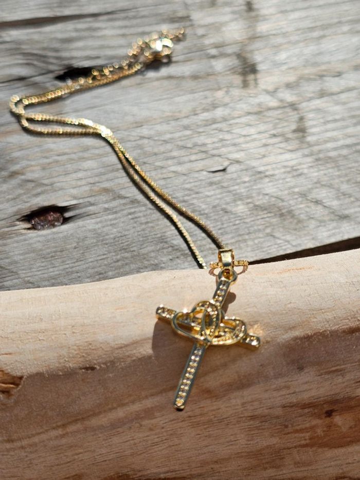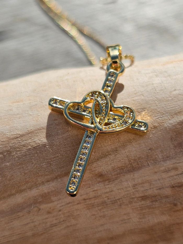 Collier croix cœur doré - photo numéro 1