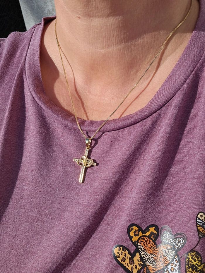 Collier croix cœur doré - photo numéro 8