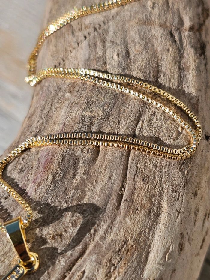 En acier inoxydalbleber doré Longueur Chaîne minimum 42cm maximum 47cm Longueur du pendentif 3cm Largeur 2cm