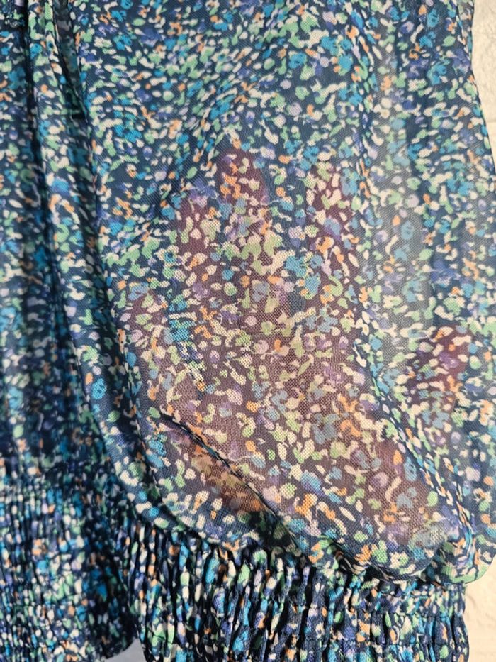 Neuve avec étiquettes Acheté 19,99 € Légère et transparente 96% polyester 4% Elasthanne Longueur totale 67cm Largeur aisselle à aisselle 56cm Largeur épaule à épaule 40cm P8