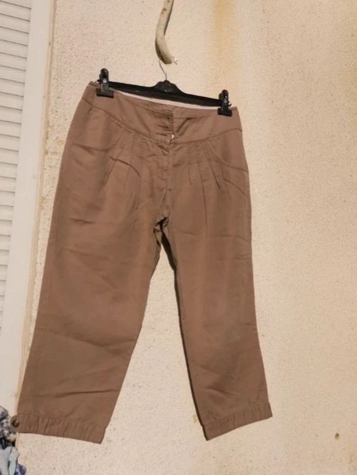 Pantacourt Morgan beige en très bon etat 65% coton 35% lin Longeur totale 80cm Entrejambe 56cm (P5)