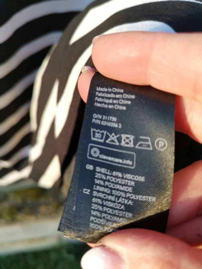 Noire et blanche neuve sans étiquettes 🏷 Longueur totale 87,5cm Largeur aisselle à aisselle 50cm Largeur épaule a épaule 40cm Matière 61% viscose 25% polyester 14%polyamide / doublure 100% polyester P4