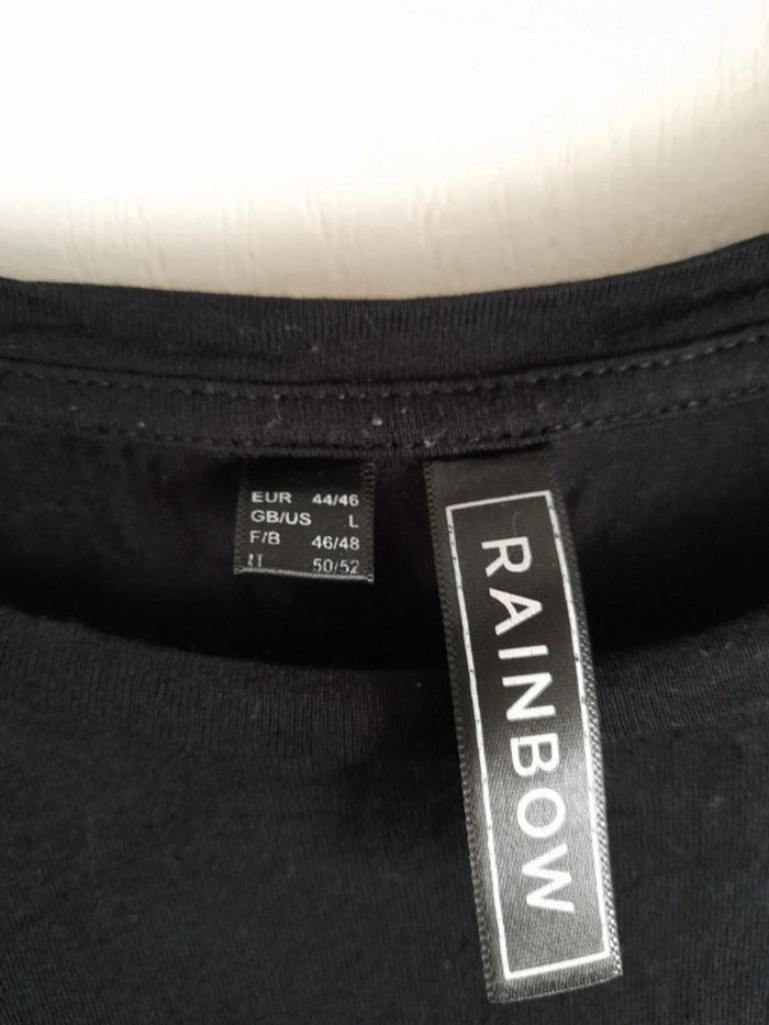 T-shirt noir blanc rouge Taille 46/48 Bon état il y a 2 petits trous voir photos #rachel62500femme4648