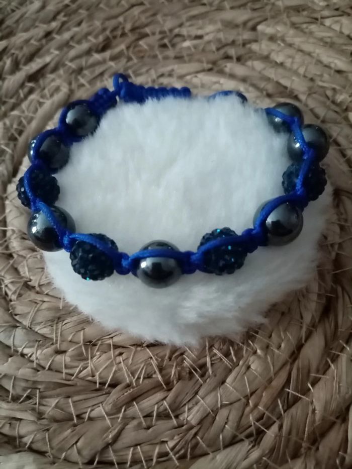 Bracelet shamballa bleu, perles grises et perles bleues à strass Très bon état #rachel62500bijoux