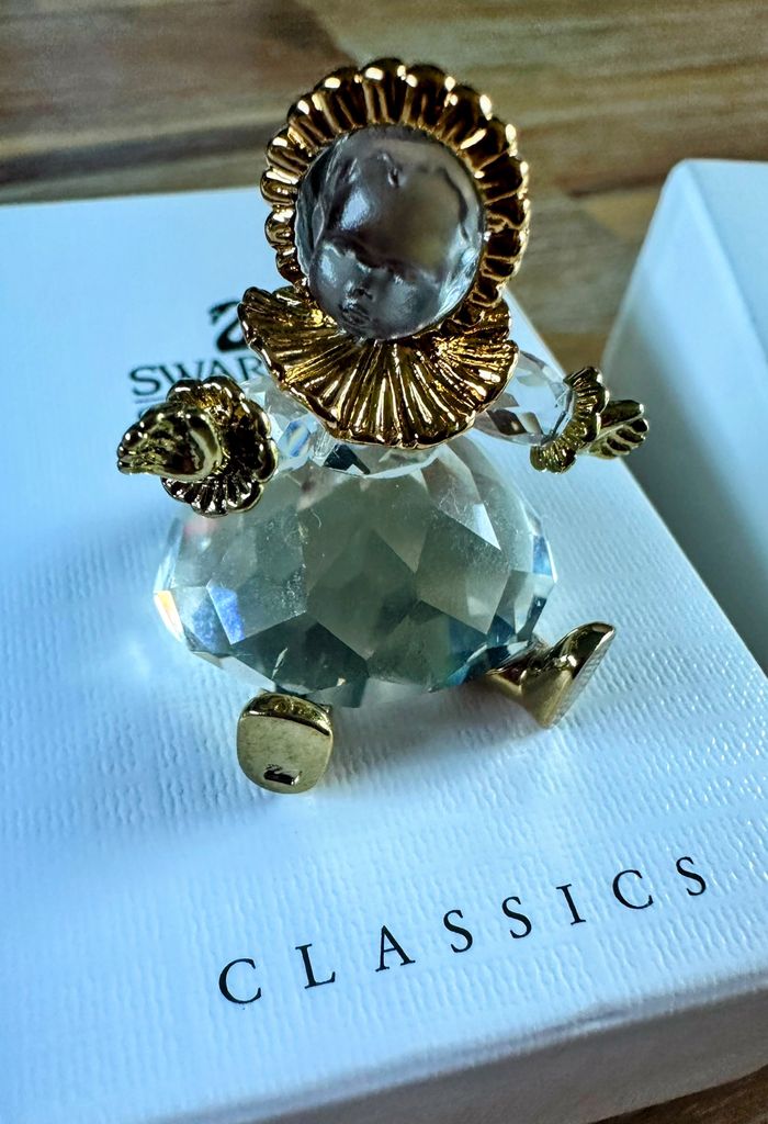 Figurine en cristal Swarovski et plaqué or. Représente un poupon. Taille 3 cm Vendu avec boîte d’origine Pièce de collection Excellent état