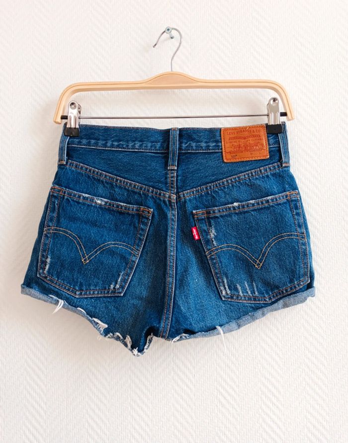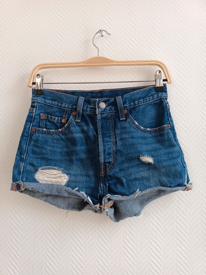 Short en jeans Levis modèle 501 à boutonné avec un style destroy en taille 24 soit une taille XS/34. Il est en parfait état, aucun défaut. #levis #levis501 #jeans #jean #jeanslevis501 #jeanslevis #shortlevis #shortlevis501 #shortdestroy #shortdestroylevis #shortenjeans #shortjeanlevis #shortjeans #levis24 #levistaille24 #shortlevis24 #destroy #vintage