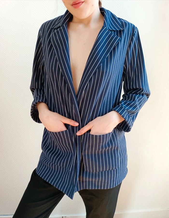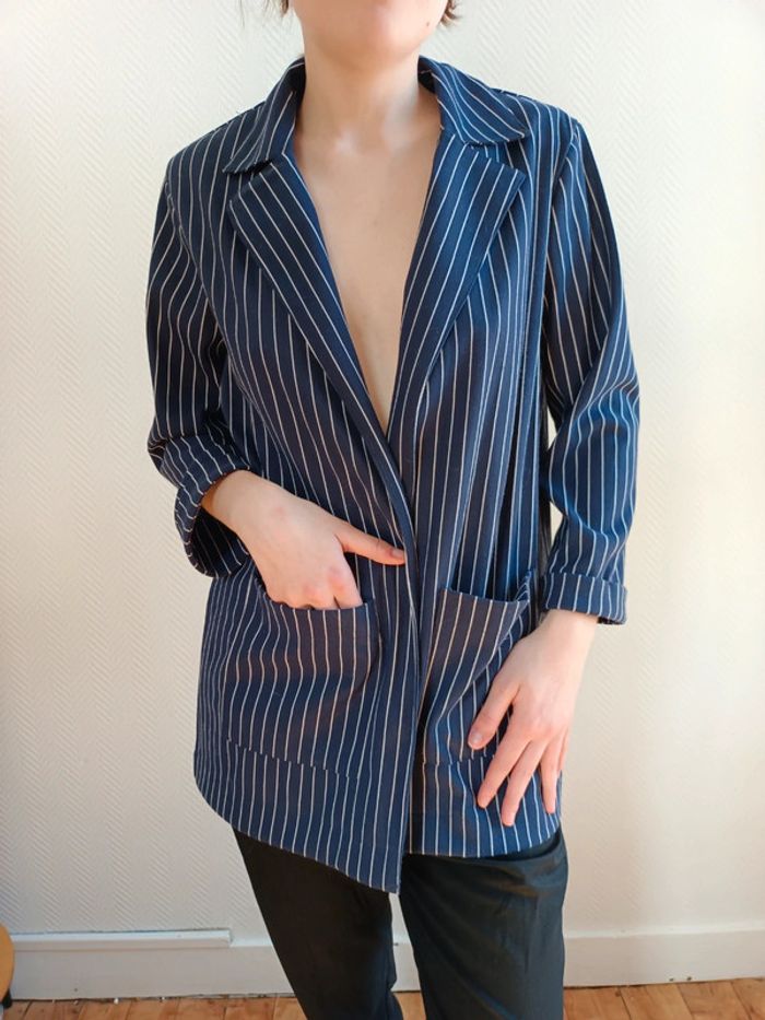Veste style blazer ouverte à rayures de la marque Cache Cache en taille 36/S. Elle est en parfait état, peu portée. #veste #vesteblazer #blazer #vesteouverte #cachecache #vestecachecache #veste36 #vestetaille36 #blazer36 #blazertaille36 #blazerbleu #vestebleu #jacket #jacke #giacca #chaqueta