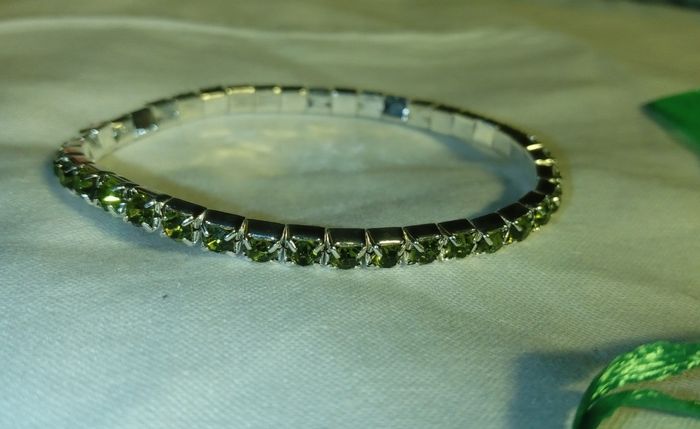 Bracelet argenté Strass Vert - photo numéro 1