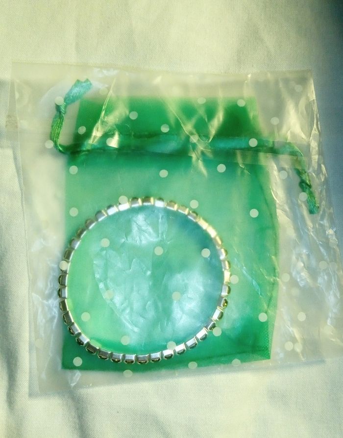 Bracelet métal argenté Strass Vert Élastique + pochon Bijou