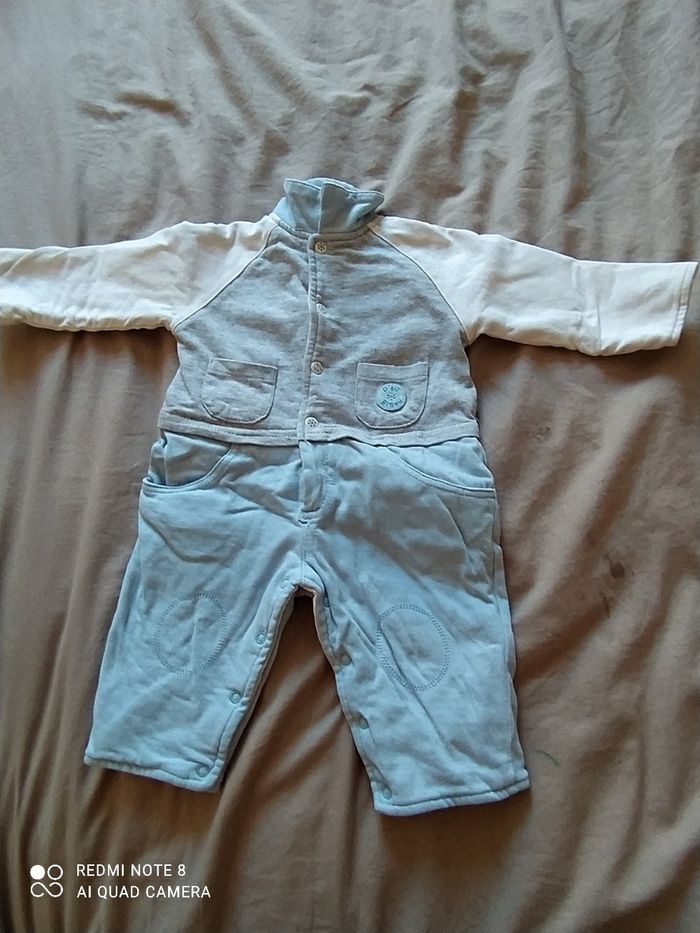 1 salopette et deux petits ensembles. Le haut et le bas sont cousu ensemble ça se met comme un pyjama pour plus de confort