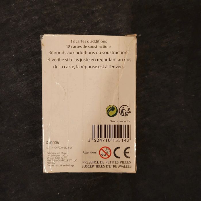Jeux de carte pour apprendre à compter boîte dechirée a l'arrière recollée avec du scotch. Jeux complet et cartes jamais utilisées donc en parfait état