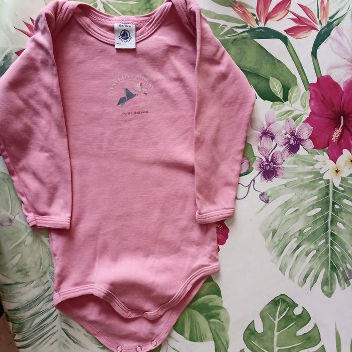 Bodies manche longue rose avec dessin origami. Très bon état. 12 mois