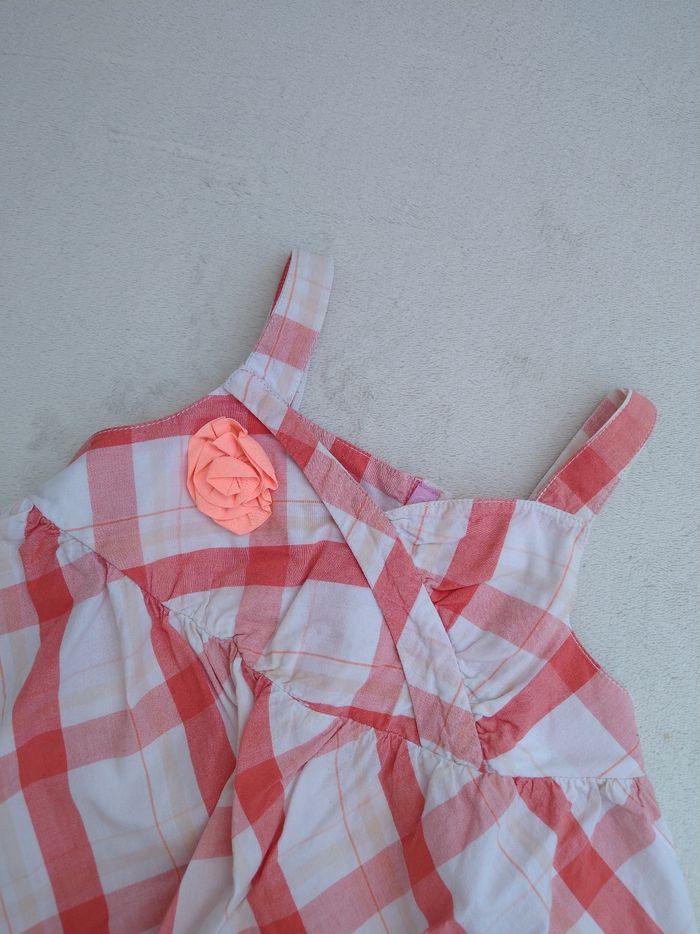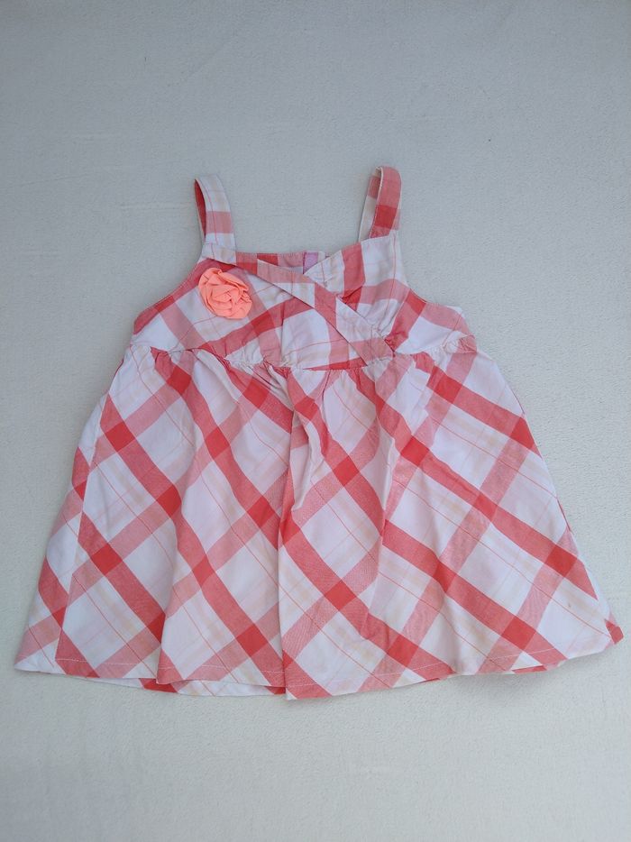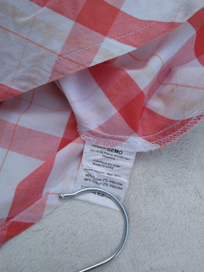 Débardeur/Blouse à bretelles Marque Gémo Taille 36 mois • Coloris blanc, rouge, beige • Imprimés carreaux, fleur décorative • Pressions au dos • Tissu fin • Petite tache sur le bas En très bon état #evelyne_filles_3ans #evelyne_filles