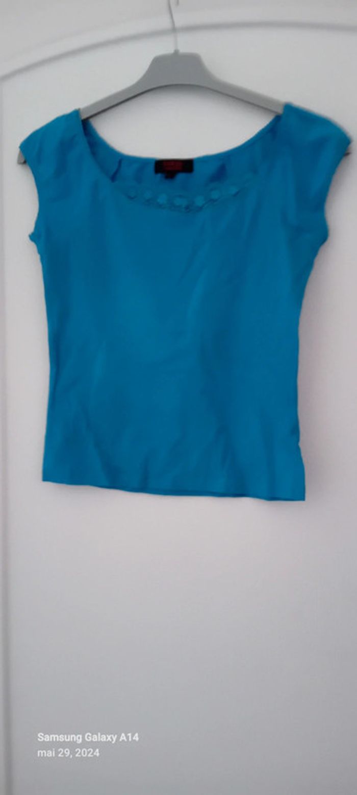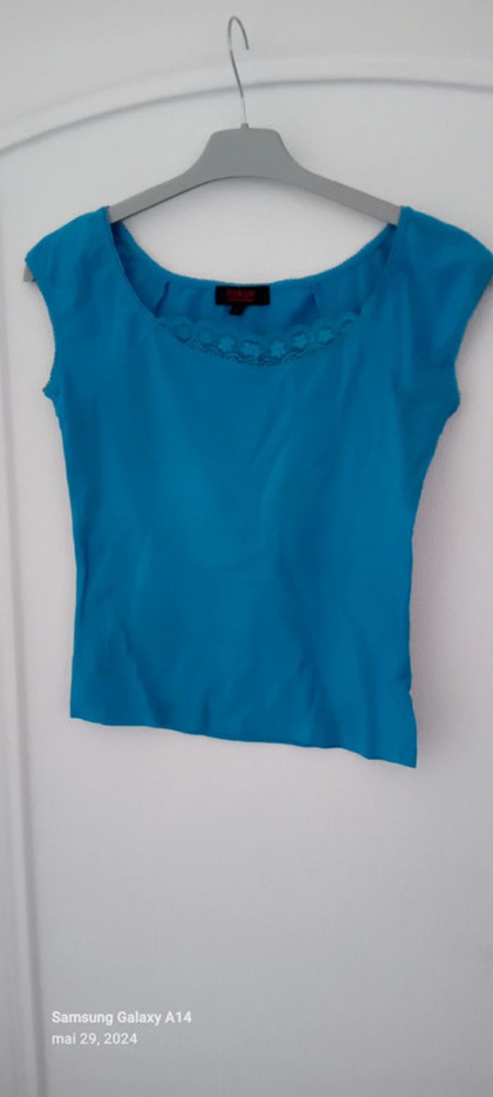 Haut été avec dentelle au col turquoise femme S - photo numéro 5