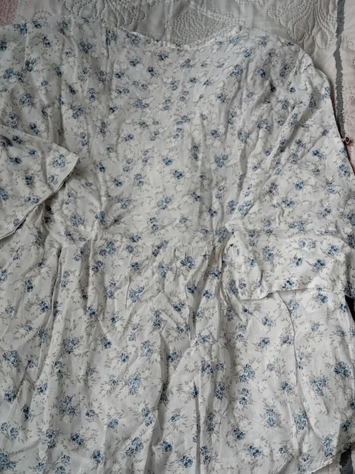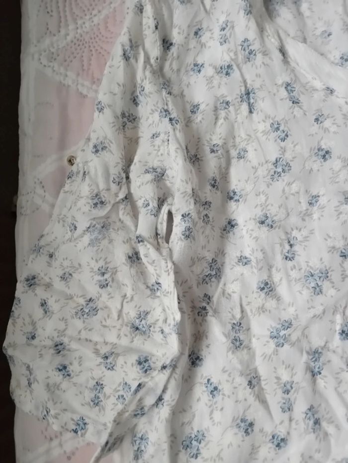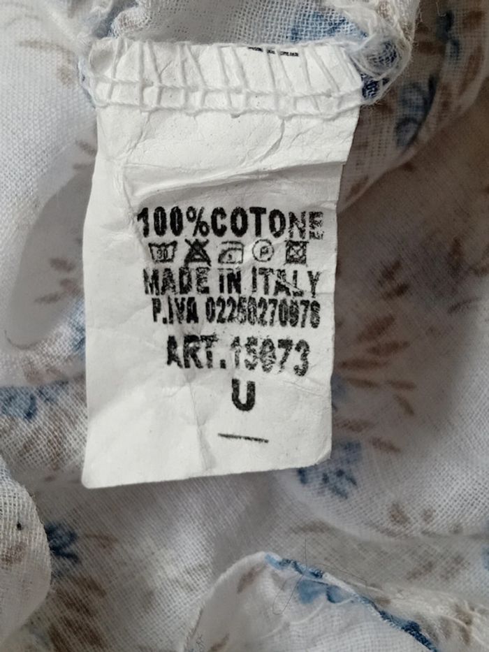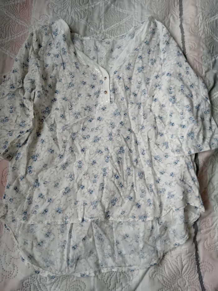 Blouse en coton léger col en V avec sequins transparents et brillants fermeture avec deux boutons manches 3/4 qui peuvent être raccourcies avec un bouton motif fleurs blanches et bleues plus courte devant que derrière longueur devant 57 cm derrière 64 cm largeur aisselles à aisselles 50 cm largeur épaules 43 cm longueur manches 36 cm et 20 cm raccourcies taille unique convient à un L très peu portée en très bon état n hésitez pas à faire un lot dans mon dressing pour bénéficier d une réduction#midolefemme #midole #midolefemme40 #blouse #blouselégère #manches3/4 #blouseimprimefleurs #madeinitaly #femme #tailleunique #bleu #fleurs