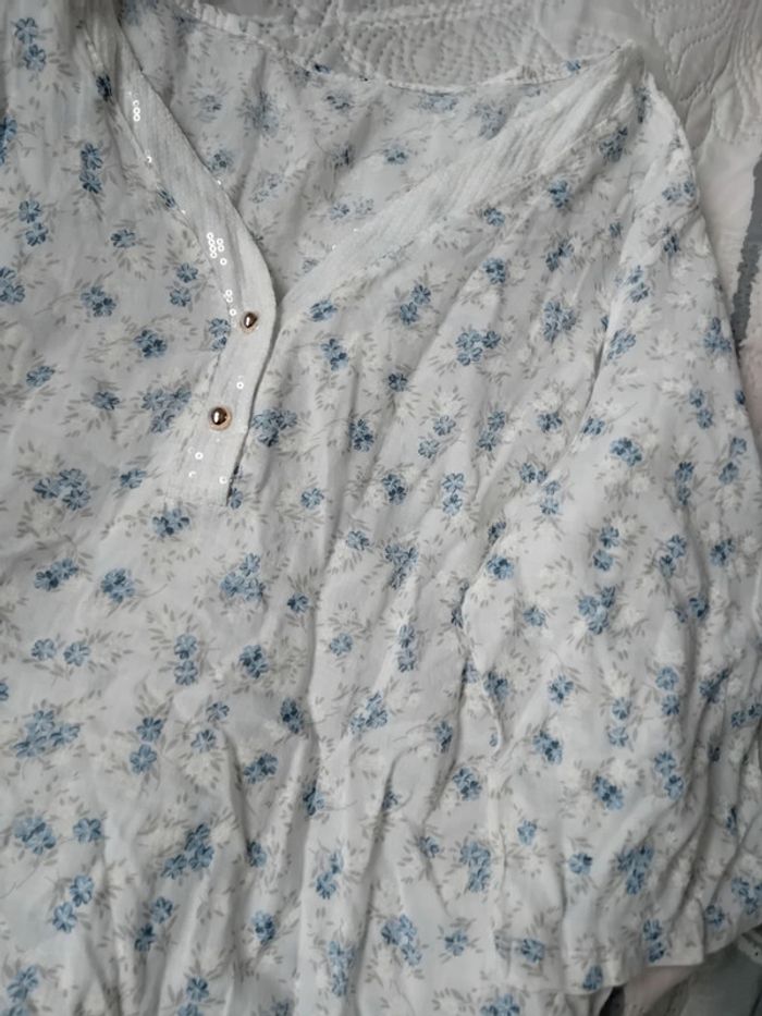 Blouse légère motif floral à sequins bleu femme taille unique made in italy - photo numéro 16