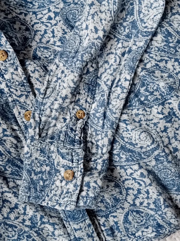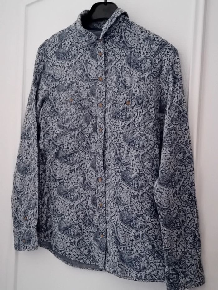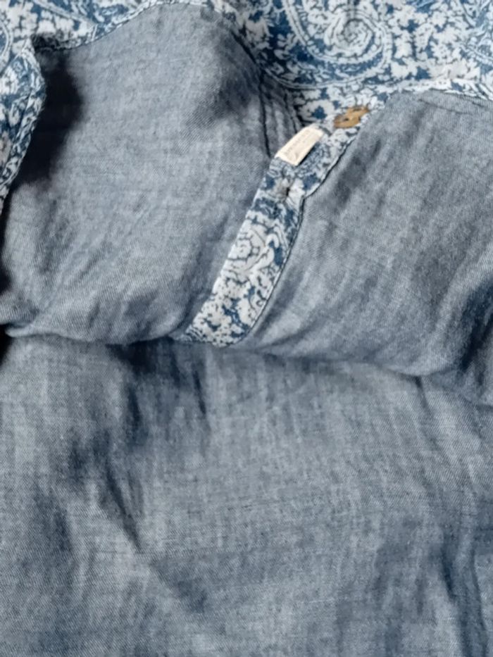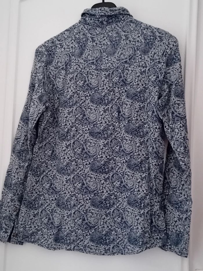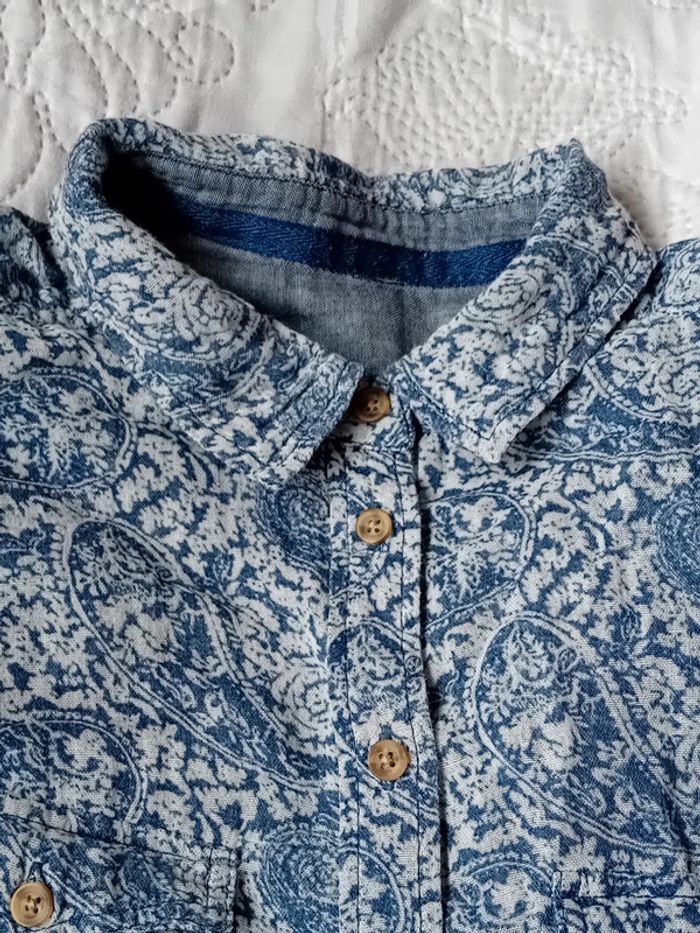 Chemise en coton léger manches longues poches sur le devant longueur 65 largeur aisselles à aisselles 47 cm largeur épaules 36 cm longueur manches 58 cm taille M correspond à un petit 38 taille petit très peu porté en très bon état n hésitez pas à faire un lot dans mon dressing pour bénéficier d une réduction #midole #midolefemme38 #midolefemme #chemisierfemme #springfield #motifarabesques #bleu #femme #femme38 #M