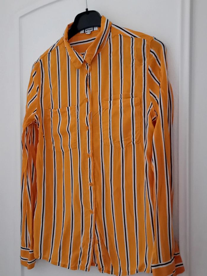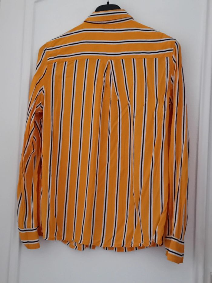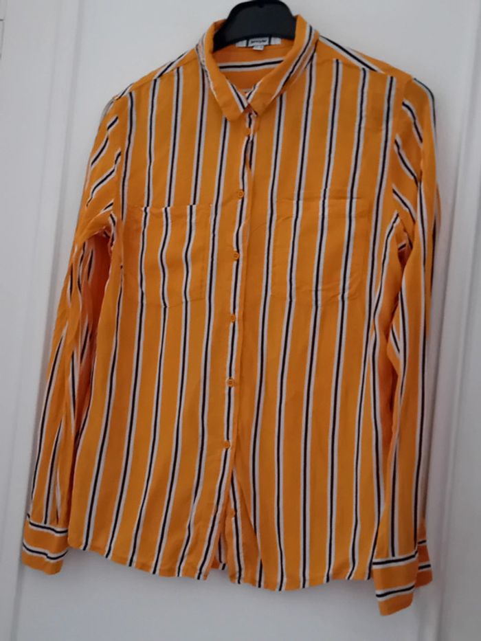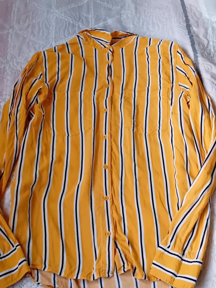 Chemise légère manches longues en coton rayures noires et jaunes deux poches devant longueur 60 cm largeur aisselles à aisselles 48 cm largeur épaules 38 cm longueur manches 57 cm très peu porté en bon état ⚠️ juste des fils tirés sur le devant (voir dernières photos) n hésitez pas à faire un lot dans mon dressing pour bénéficier d une réduction #midolefemme #midole #midolefemme38 #jennyfer #chemisier #chemise #femme #femme38