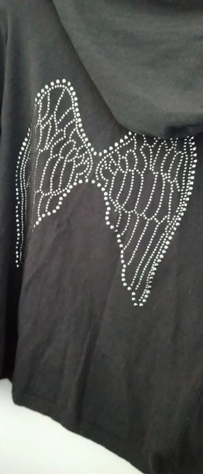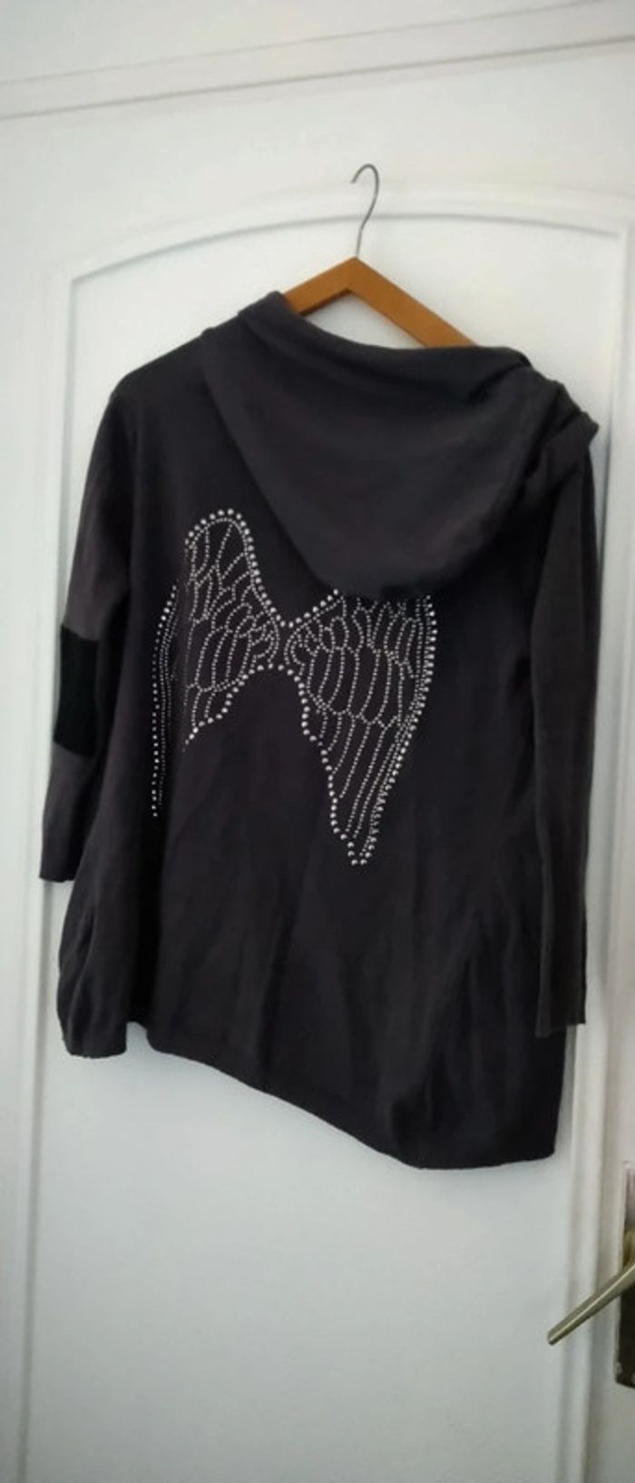 Gilet long à capuche manches longues avec ailes d ange en clous argentés au dos renfort sur les manches matière coton et polyamide longueur 56 cm largeur aisselles à aisselles 49 cm largeur épaules 42 cm longueur manches 44 cm porté quelques fois en très bon état ⚠️ juste quelques très légères peluches au niveau des manches (voir dernières photos) n hésitez pas à faire un lot dans mon dressing pour bénéficier d une réduction #midoleenfant #midolefille #midole #midolefille12ans #gilet #giletàcapuche #giletlong #giletavecclous #ailes #ailesdanges #gris #kiabi #fille #fille12ans