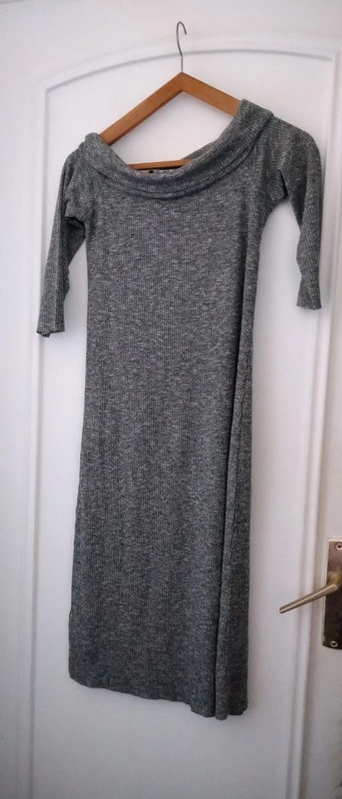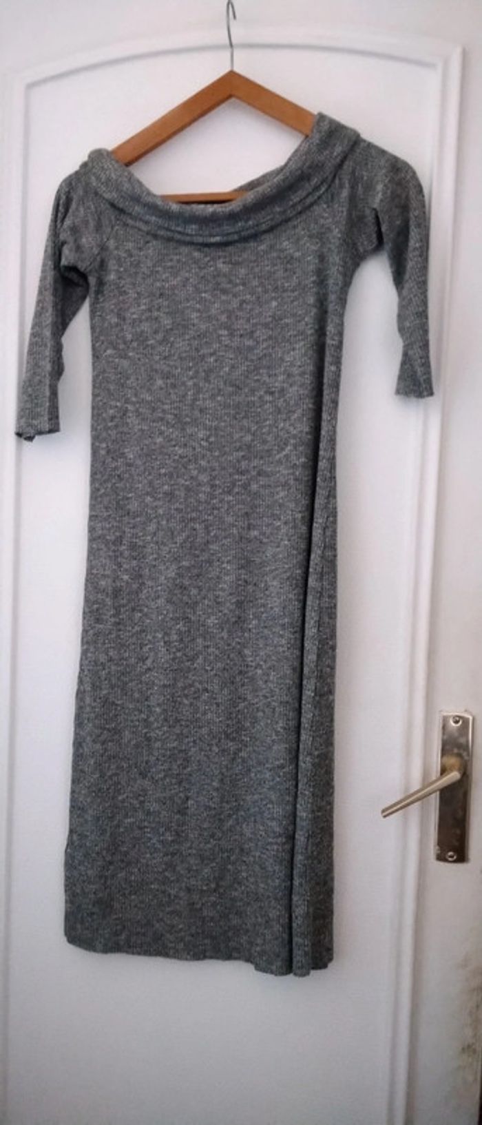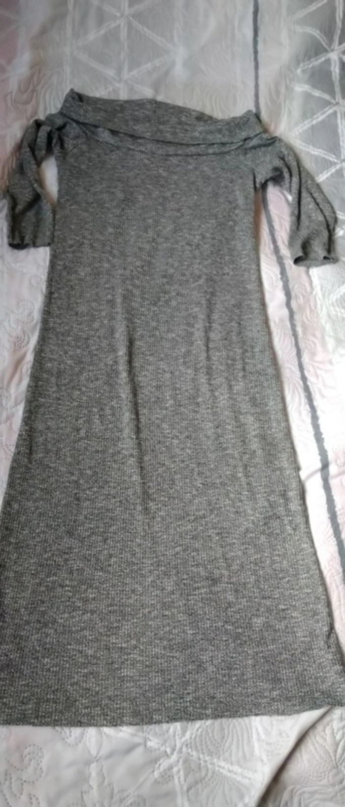 Robe pull longue en viscose polyester et elastanne manches 3/4 col montant châle longueur 97 cm largeur épaules 40 cm longueur manches 32 cm jamais porté état neuf n hésitez pas à faire un lot dans mon dressing pour bénéficier d une réduction #midolefemme #midolefemmexs #midole #robepull #robepullfemme #mango #xs #gris #femme #femmexs