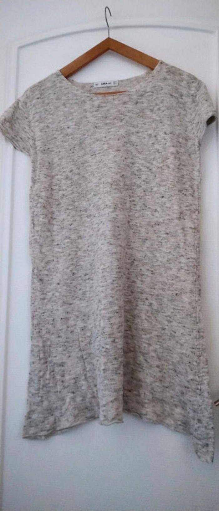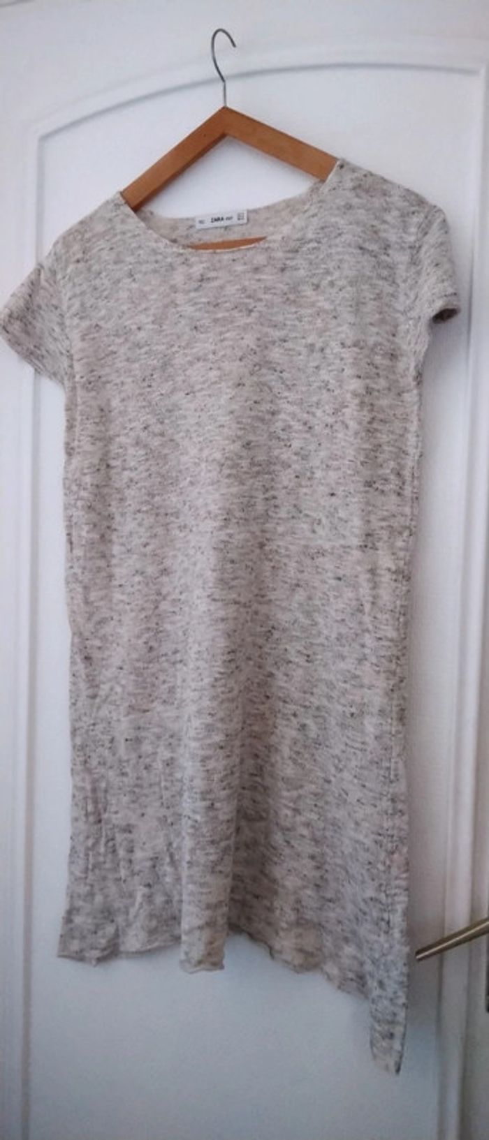 Pull tunique manches courtes beige chiné femme M zara - photo numéro 1
