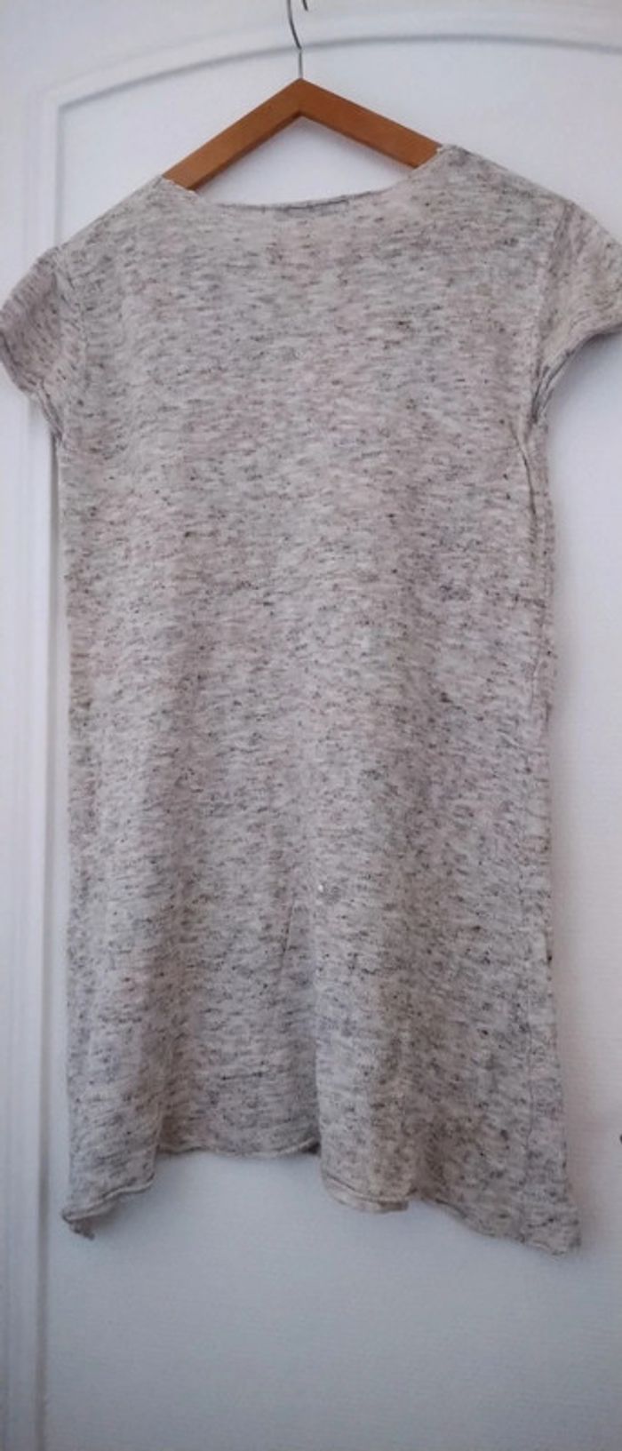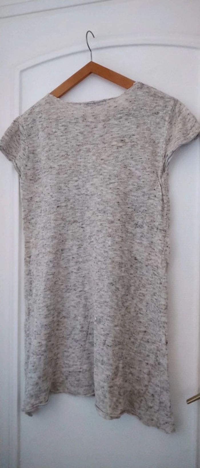 Pull tunique manches courtes beige chiné femme M zara