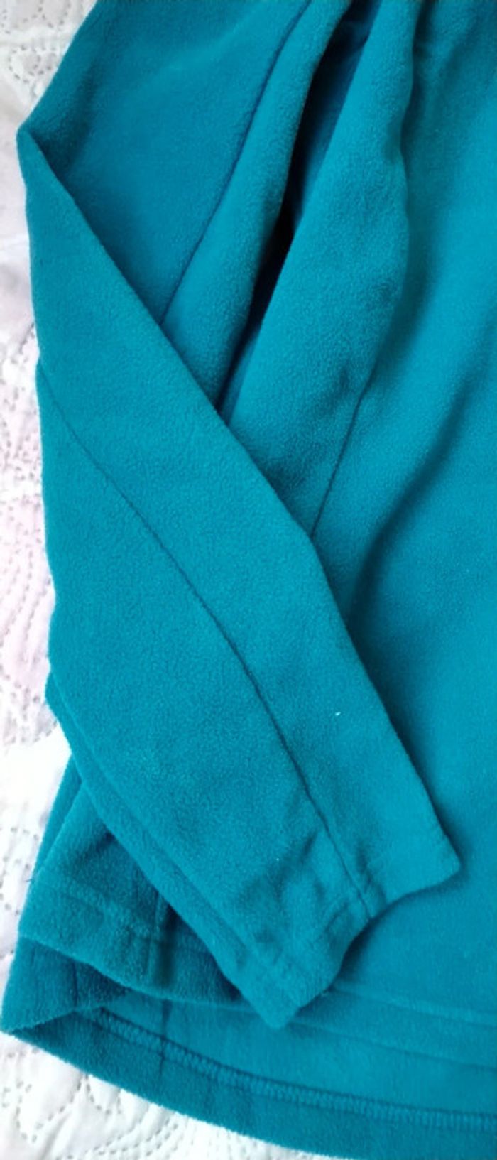 Haut manches longues col zippé cintré au niveau des hanches couleur bleu turquoise longueur 66 cm largeur aisselles à aisselles 50 cm largeur épaules 39 cm longueur manches 65 cm taille L correspond à un 40 en polyester polaire bien chaude idéal pour le ski ou la randonnée très peu porté en très bon état ⚠ juste un petit fil tiré devant en bas (voir dernières photos) n hésitez pas à faire un lot dans mon dressing pour bénéficier d une réduction #midolefemme #midole #midolefemme38