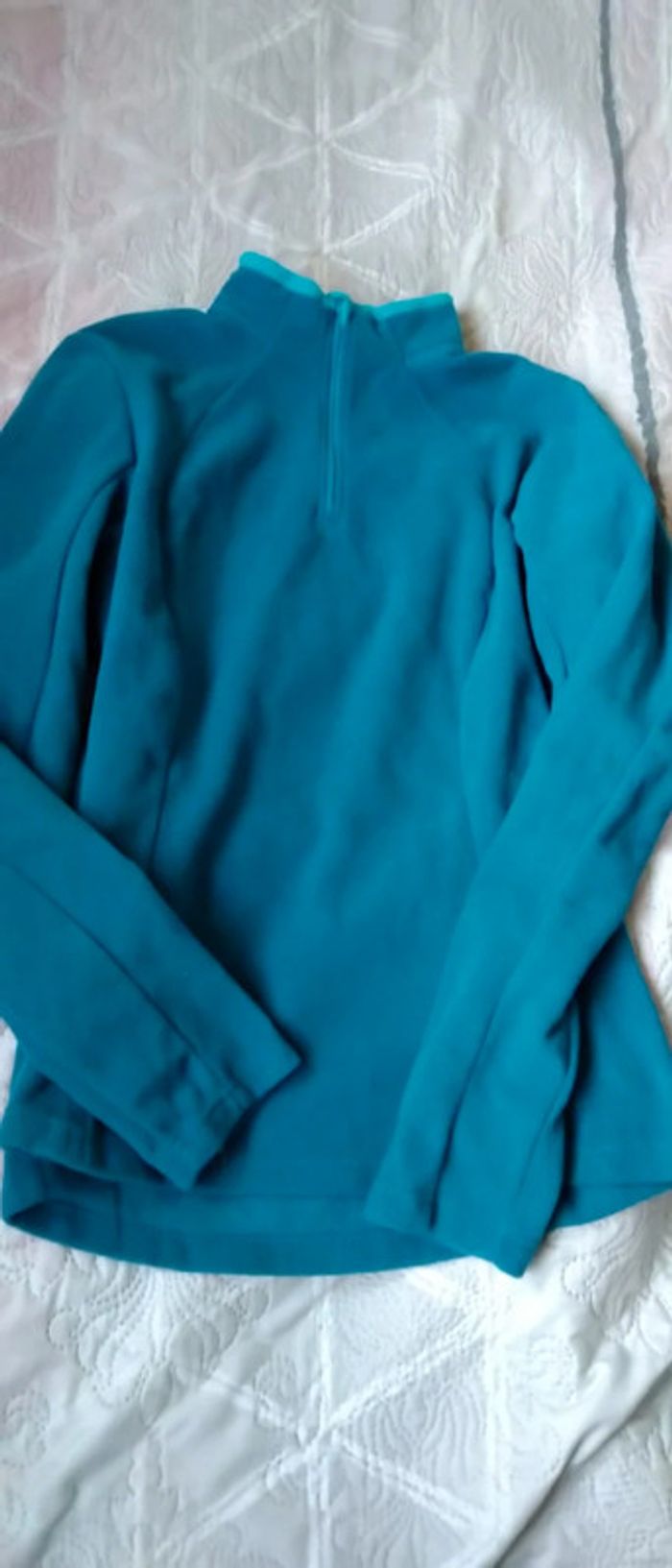 Haut col zippé polaire quechua bleu turquoise femme L décathlon
