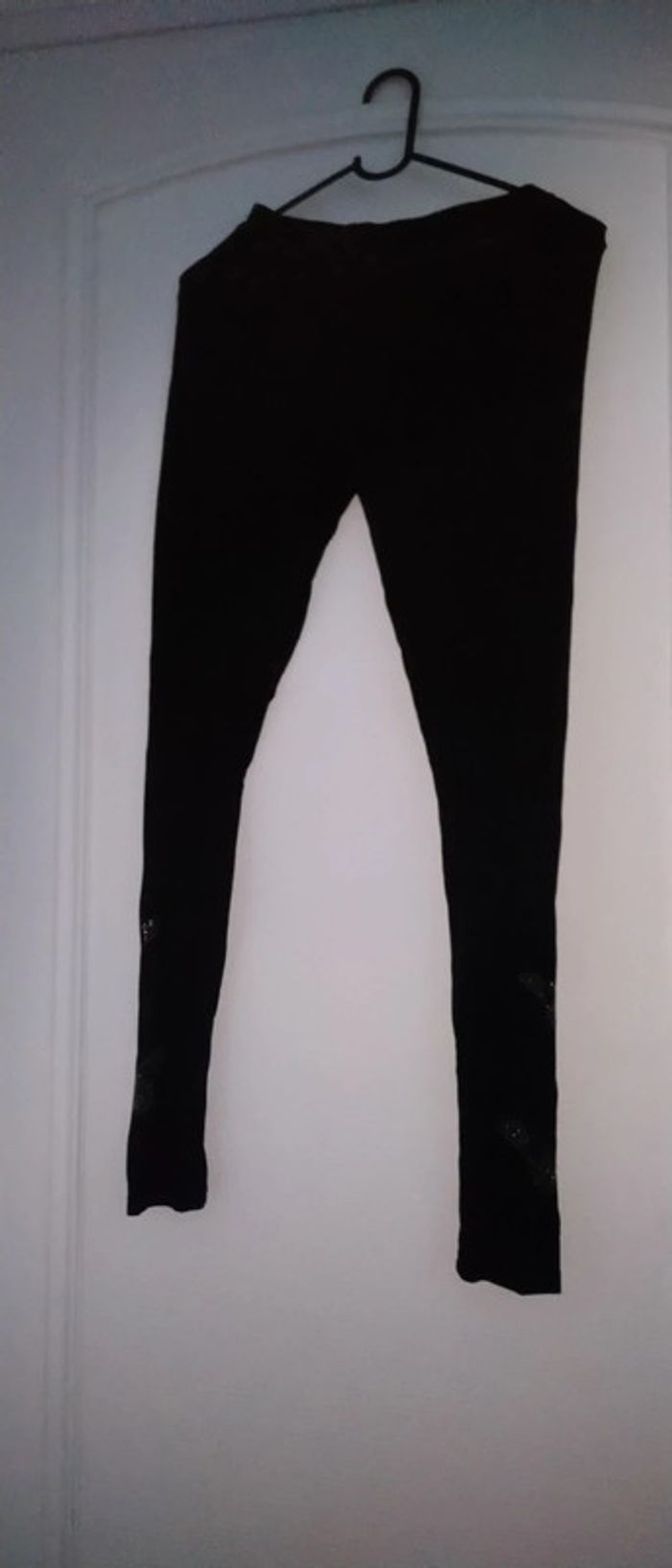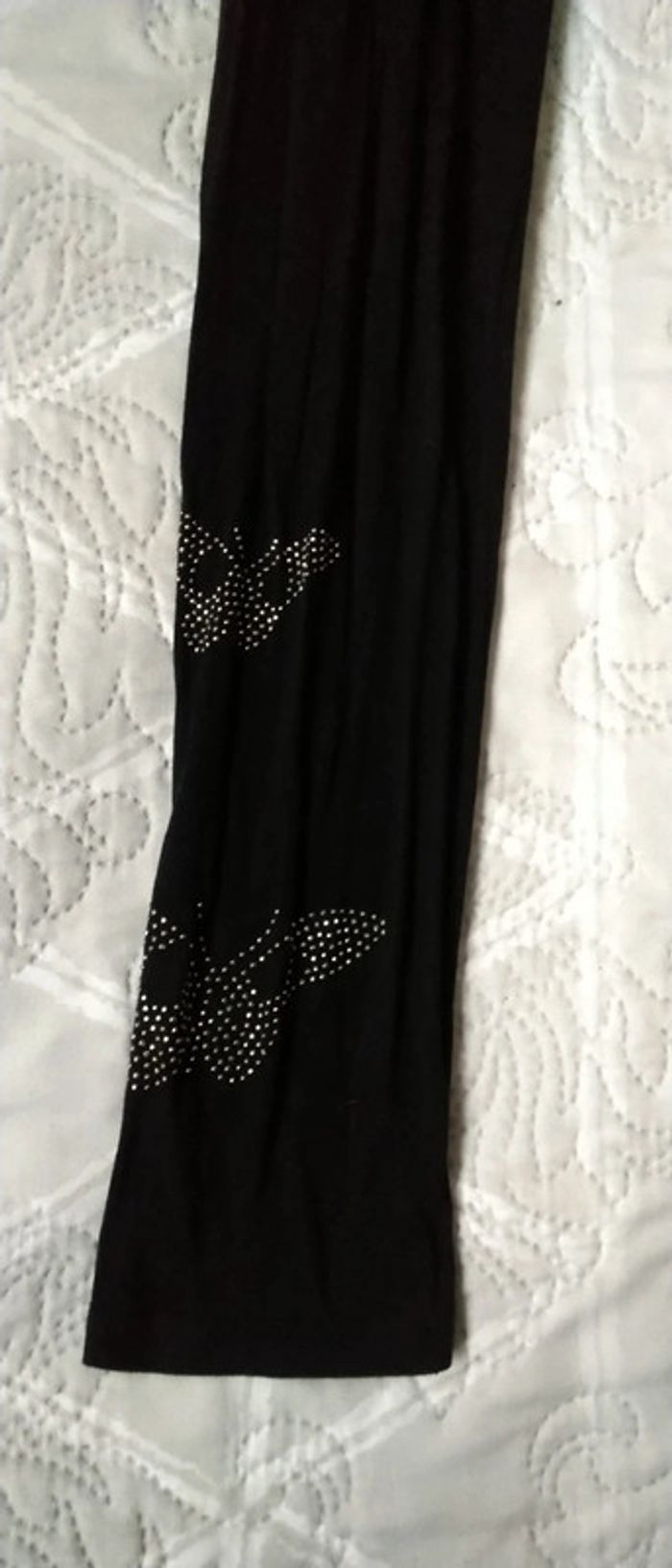 Leggings en viscose et elasthanne matière fluide et extensible taille basse élastique motif papillons en petits clous strass brillants en bas des jambes longueur 90 cm largeur cuisses 20 cm largeur bas de jambe 10 cm idéal pour une soirée ou les fêtes de fin d'année taille S /36 très peu porté en très bon état n hésitez pas à faire un lot dans mon dressing pour bénéficier d une réduction #midole #midolefemme36 #midolefemmeS #leggings #leggingdefête #strass #clous #papillon #noir #viscose #femmeS