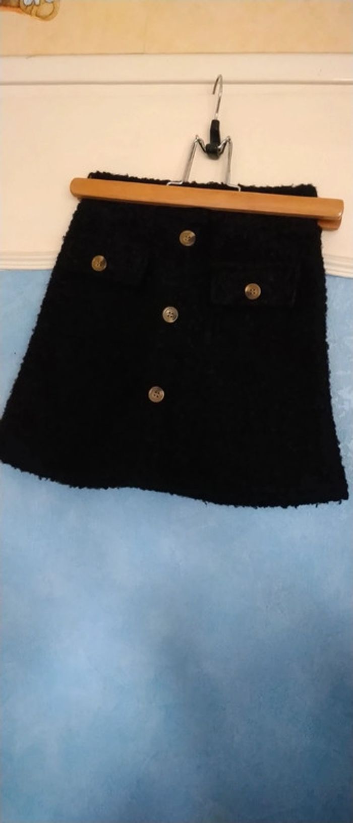 Jupe courte forme trapèze en polyester et elasthanne aspect peluche boutons et fausses poches devant taille légèrement élastique longueur 36 cm largeur hanches 33 cm largeur taille 26 cm largeur bas 44 cm très originale fabriquée en France très peu porté en très bon état n hésitez pas à faire un lot dans mon dressing pour bénéficier d une réduction #midole #midoleenfant #midolefille8ans #midolefille #jupe #jupecourte #juoetrapeze #jupeenpeluche #juoefille8ans #fille8ans