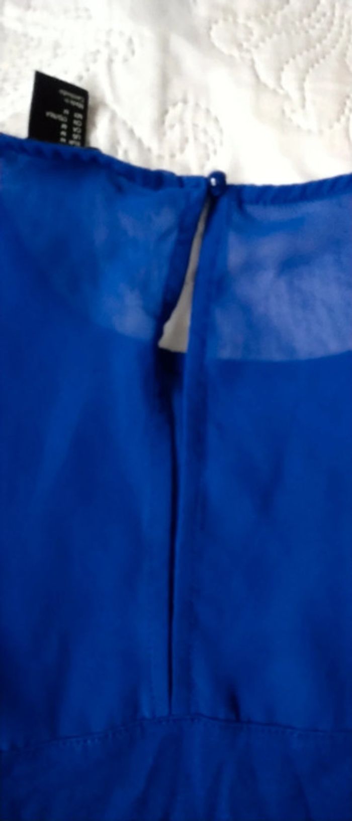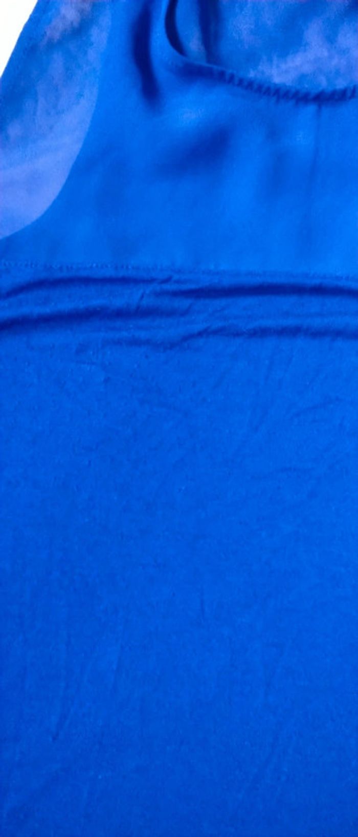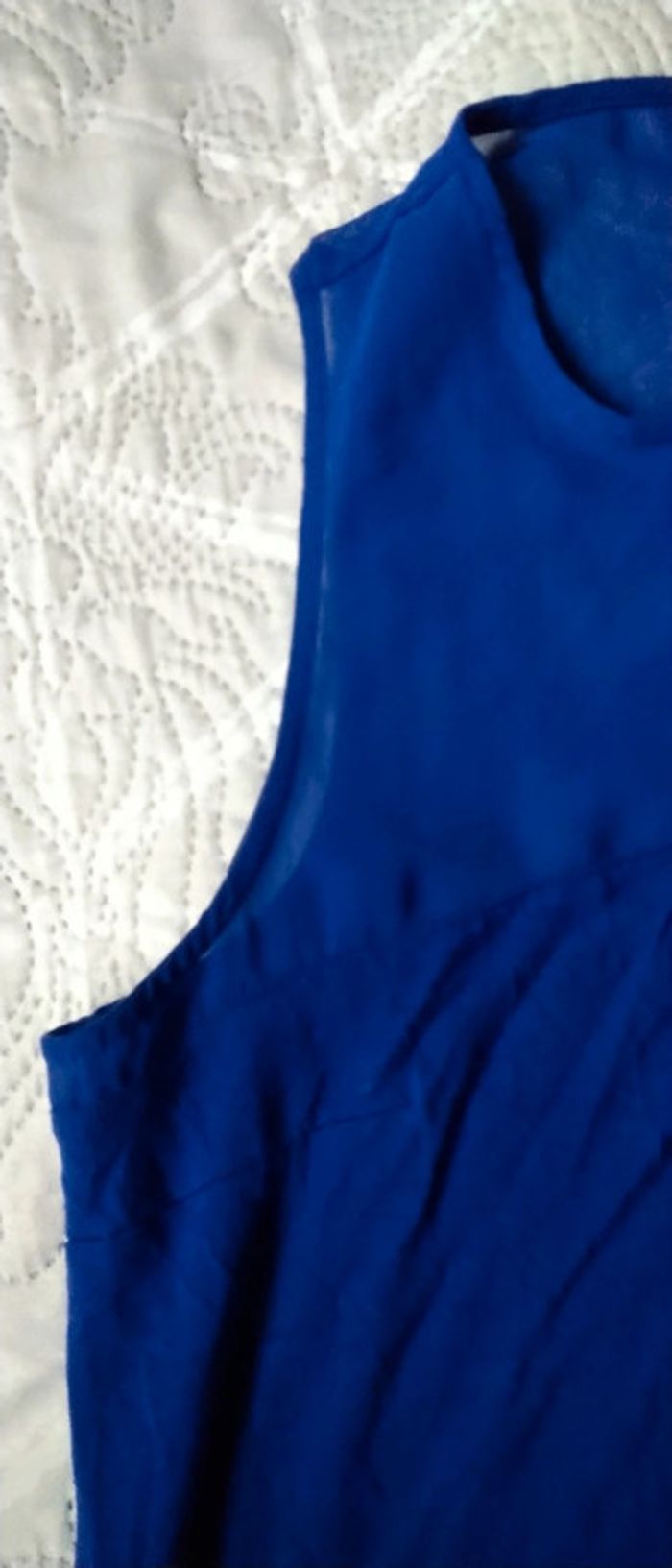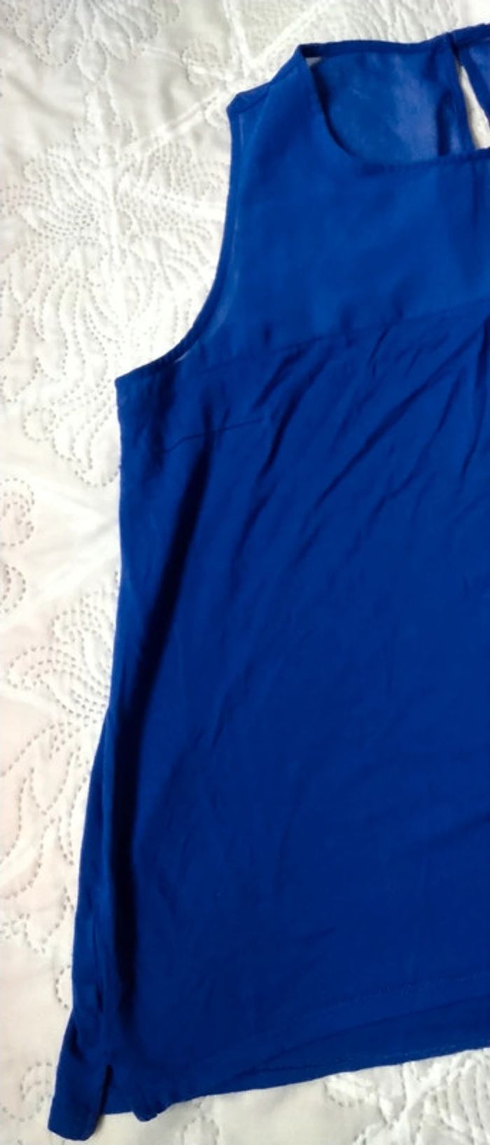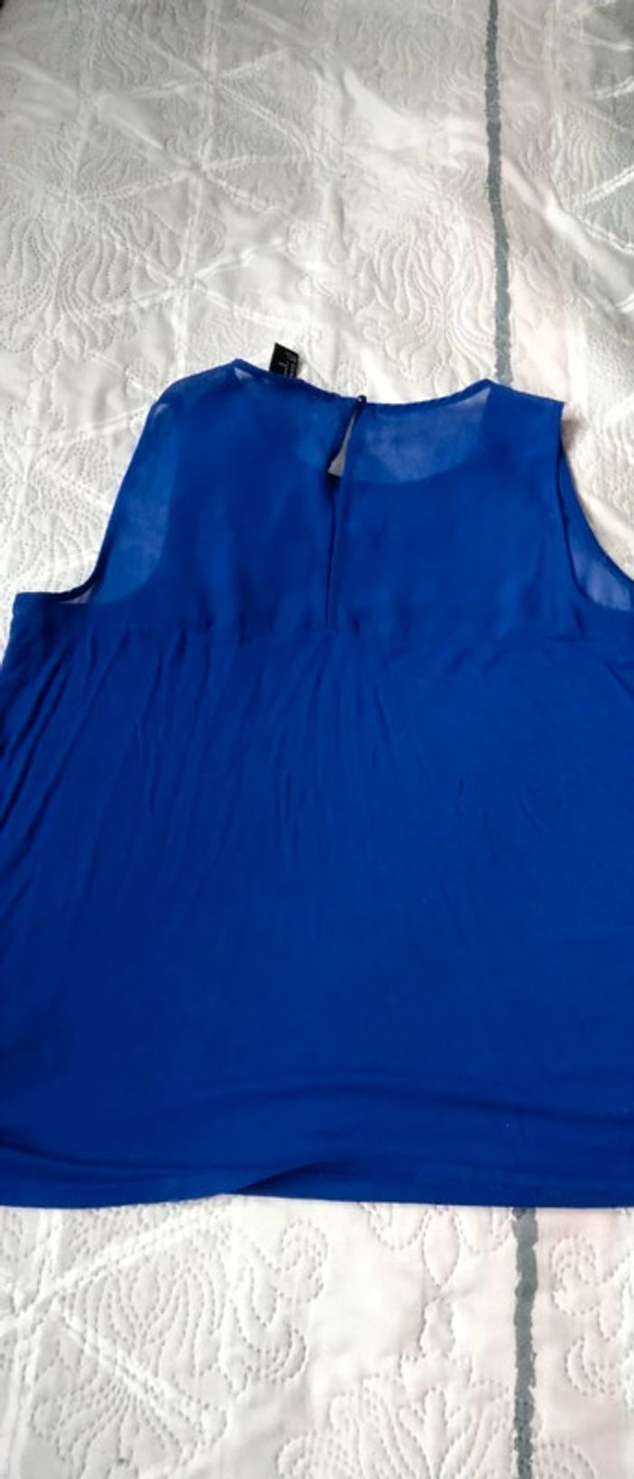Haut sans manches bi matière en viscose et polyester aspect voile fermeture avec bouton goutte d eau au dos longueur 54 cm largeur aisselles à aisselles 47 cm et largeur épaules 30 cm idéal pour une soirée porté quelques fois en bon état ⚠️ juste quelques légères bouloches dues au lavage par endroit (voir dernières photos) n hésitez pas à faire un lot dans mon dressing pour bénéficier d une réduction